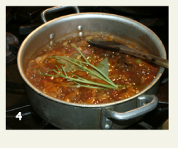 加減してください. ベイリーフ,パセリの茎を入れ,肉に70%火が通るまで煮ます. |
