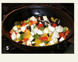 | 5, Bの野菜を油脂で表面に軽く焦げ目が付く程度ソテーして4の鍋に加えます. |