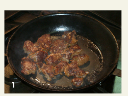 油脂を引いた フライパンで 肉の表面を焼き固め別の器に取り置く. |