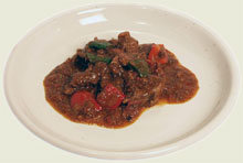Creole braised beef クレオール ブレイズド ビーフ 牛筋肉と風味付けのスパイシーソーセージをセロリ,ピメント,トマトなどのカラフルな |