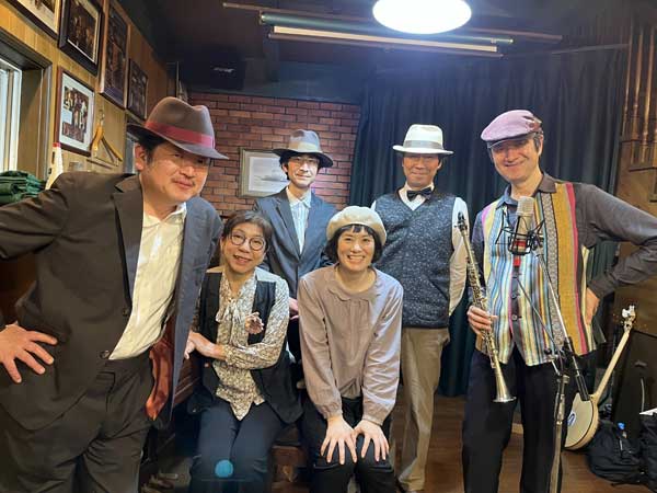 旧ディキシーの徳田充樹と秋本ひろしが新たに結成したバンド ベース,バンジョーに女性ヴォーカルを加えたオールド.アメリカンな ジャズ,フォークソング,ポップスまで広いジャンルをこなす
